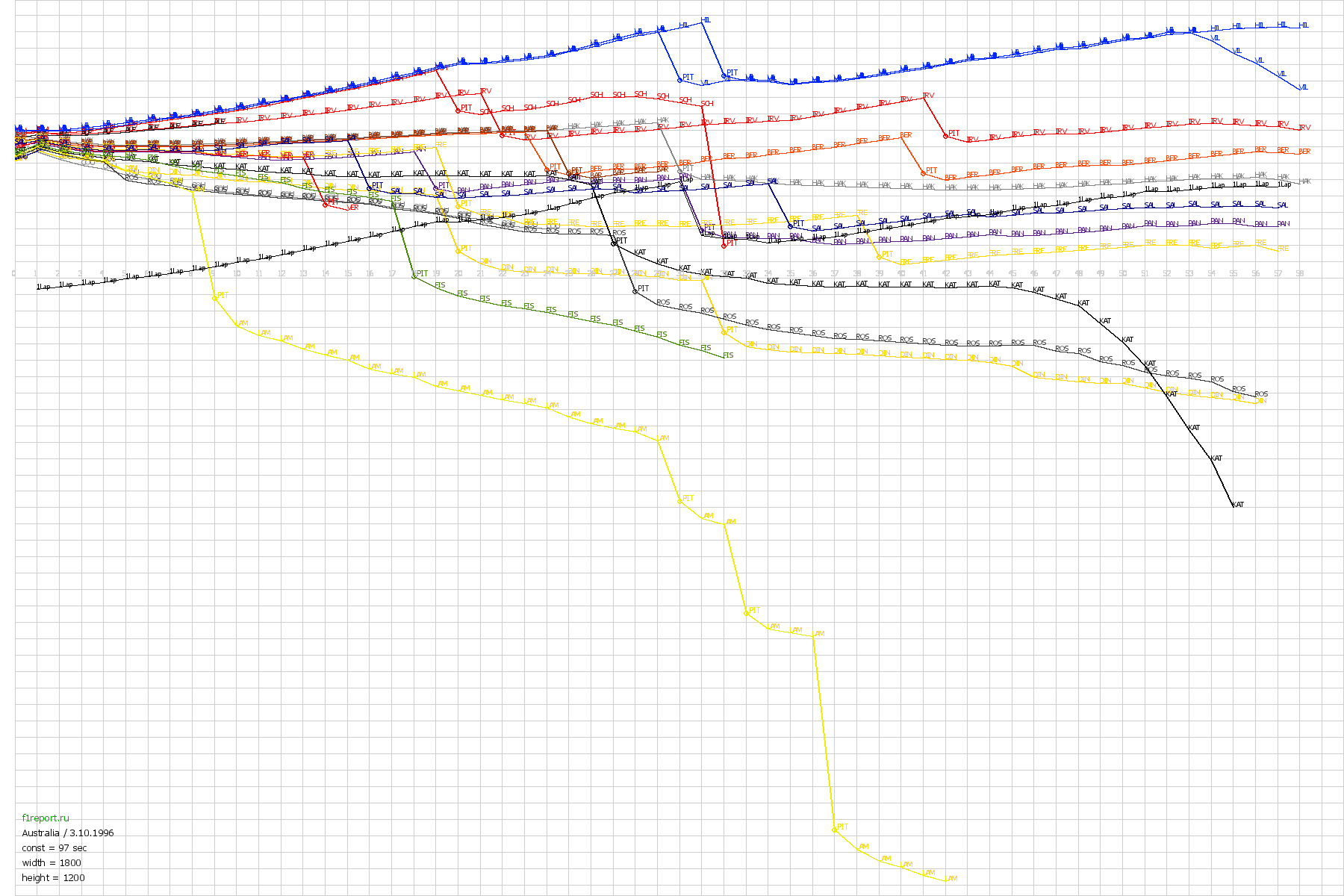 Покруговой график отрывов Гран-При Австралии 1996