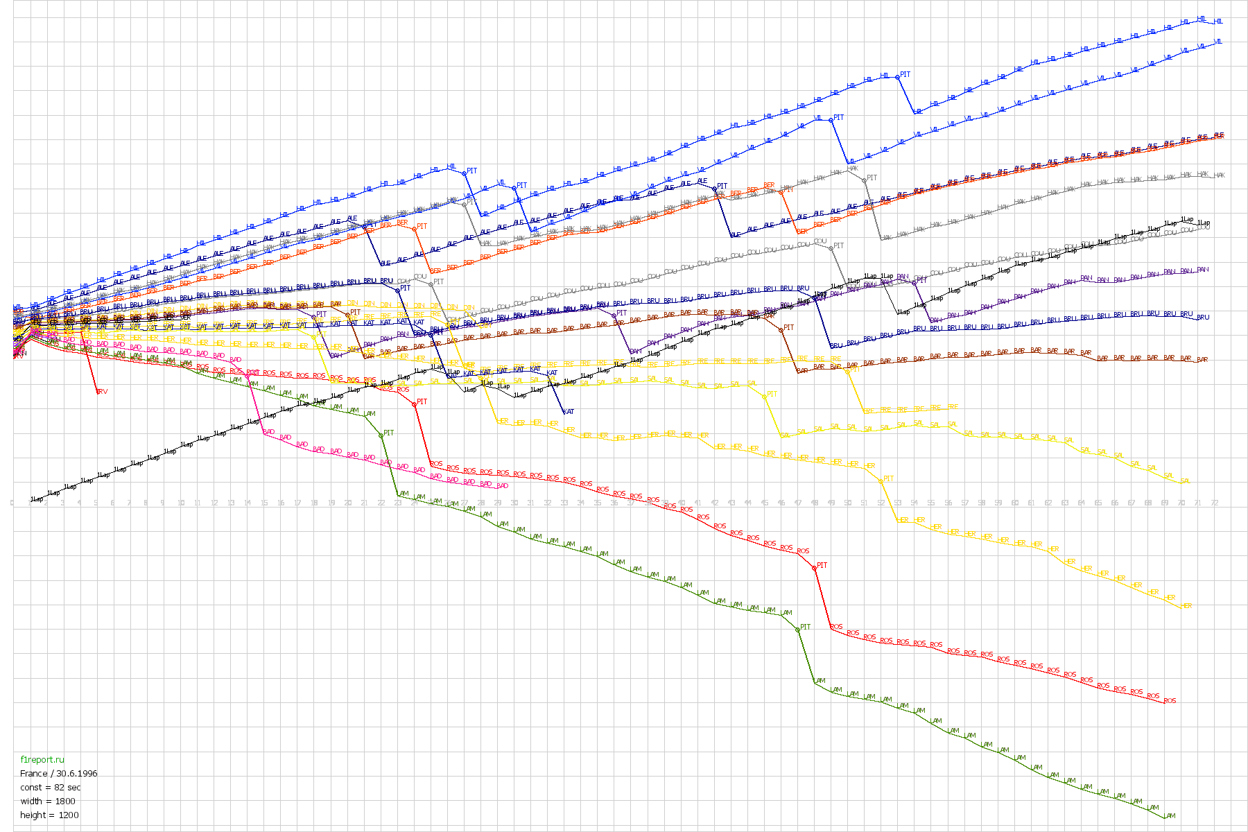 Покруговой график отрывов Гран-При Франции 1996