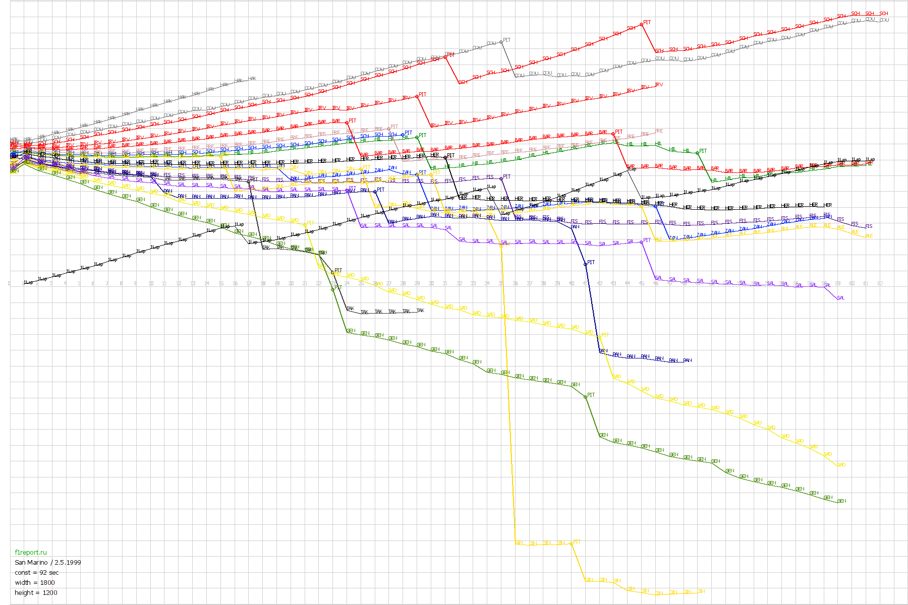 Покруговой график отрывов Гран-При Сан-Марино 1999