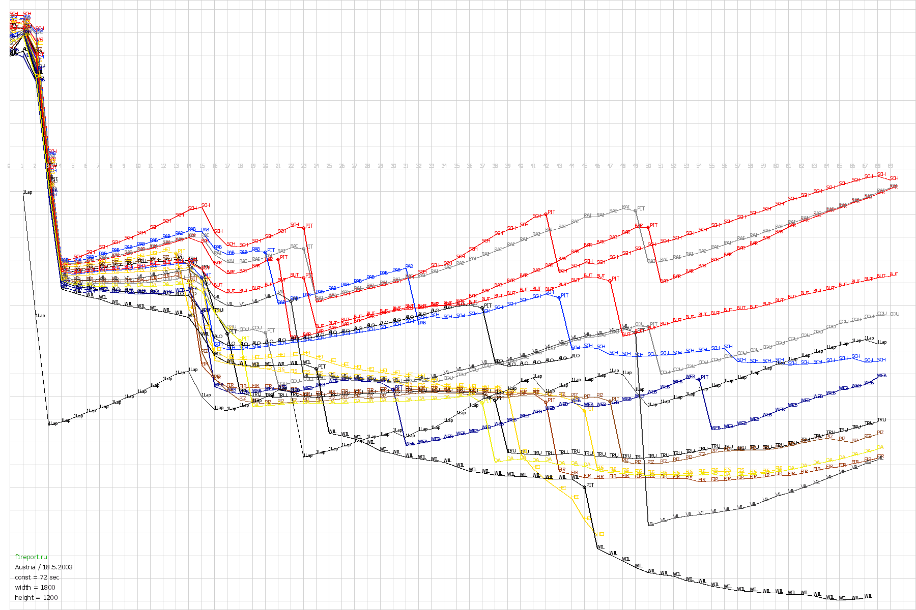 Покруговой график отрывов Гран-При Австрии 2003
