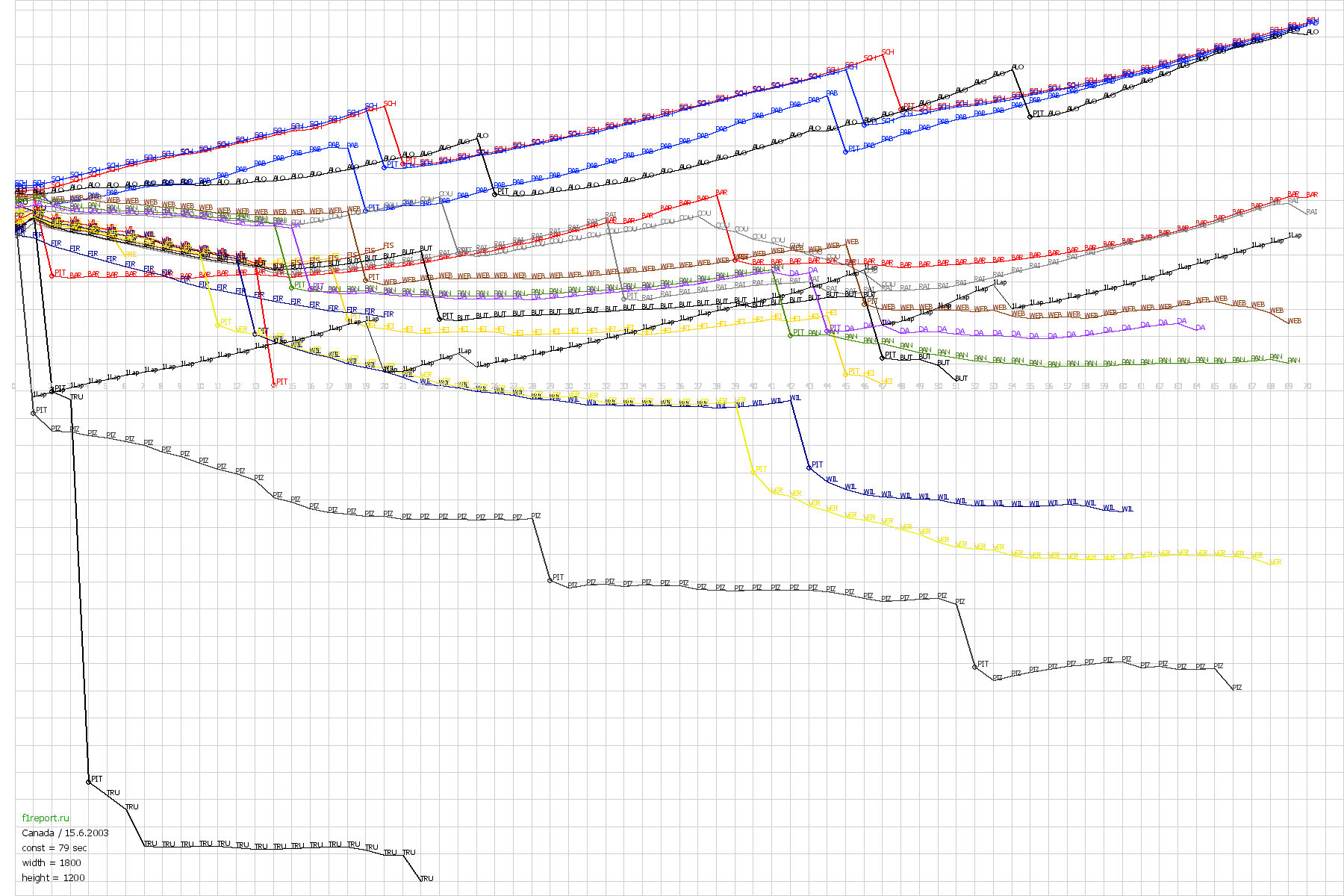 Покруговой график отрывов Гран-При Канады 2003