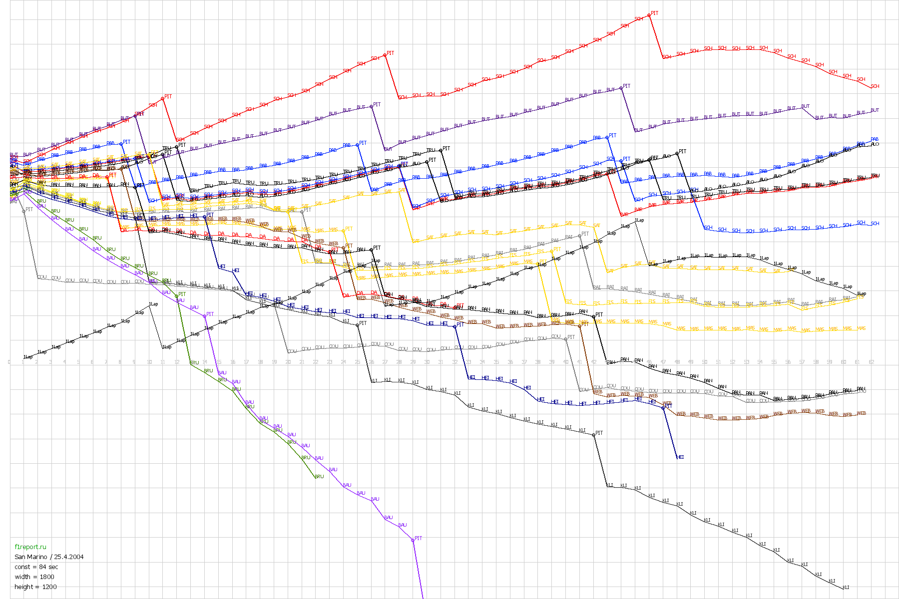 Покруговой график отрывов Гран-При Сан-Марино 2004