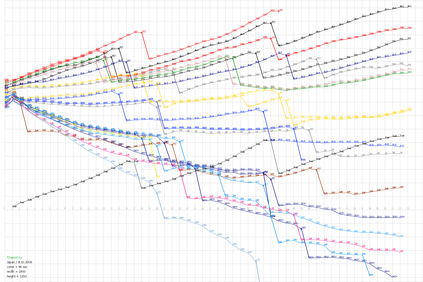 Покруговой график отрывов Гран-При Японии 2006
