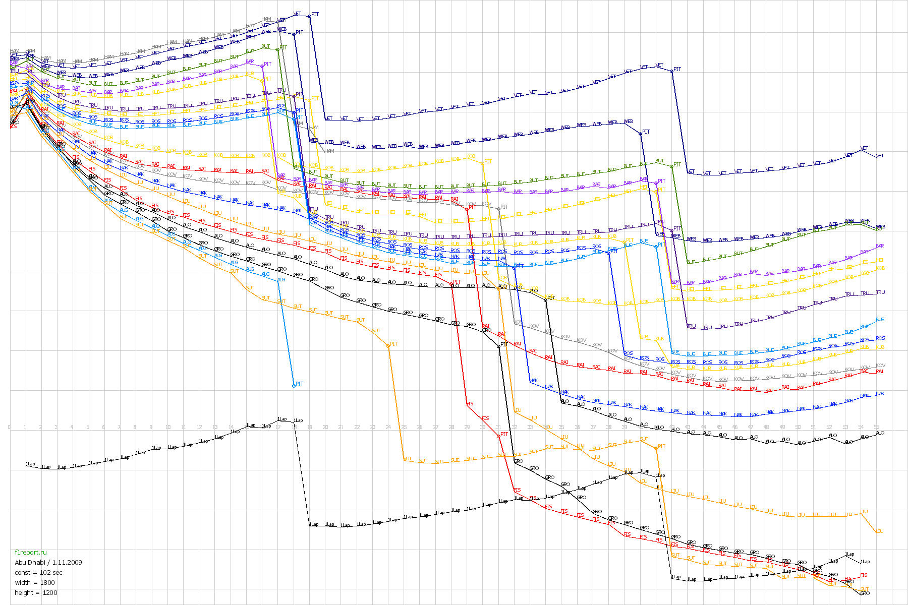 Покруговой график отрывов Гран-При Абу-Даби 2009