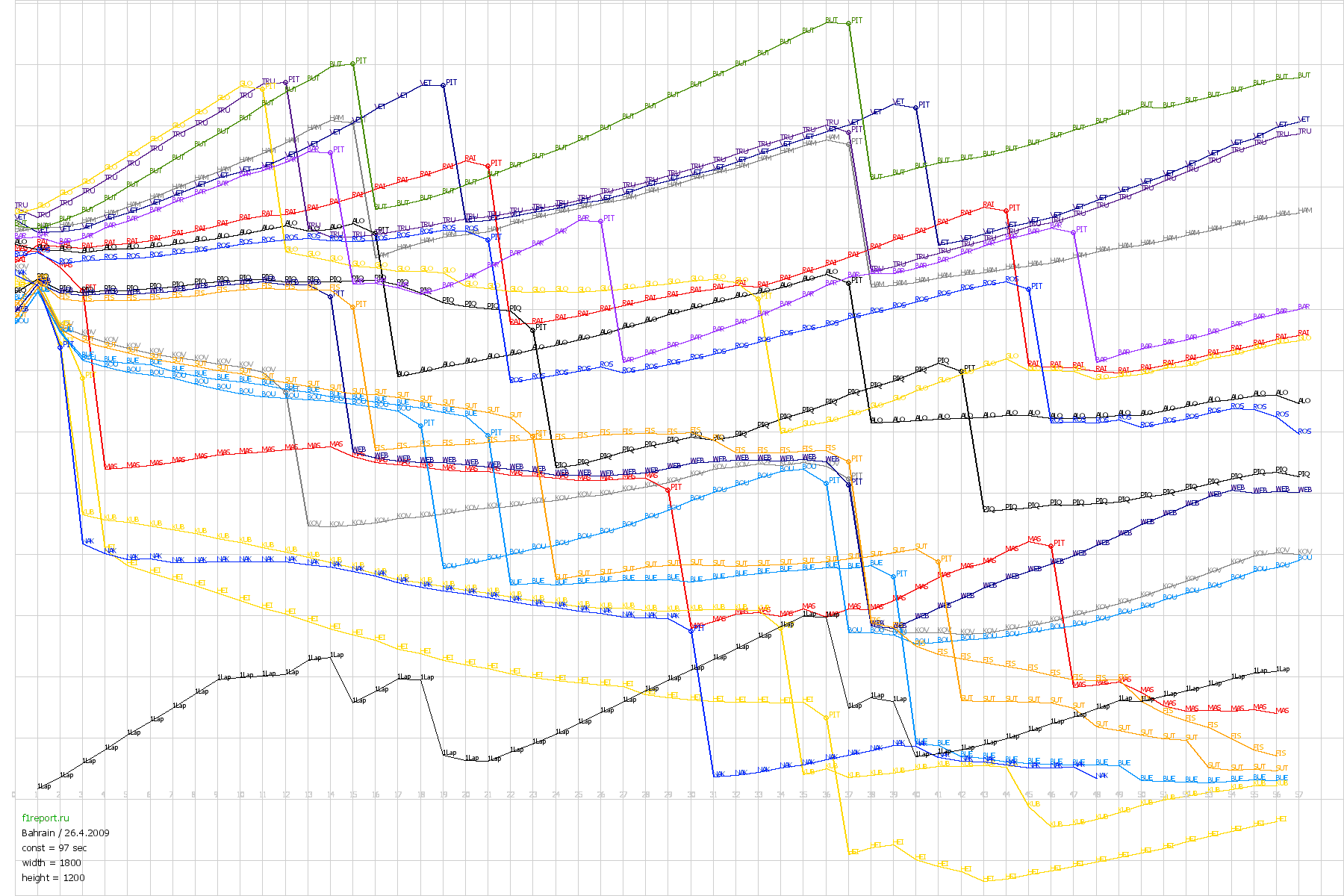 Покруговой график отрывов Гран-При Бахрейна 2009