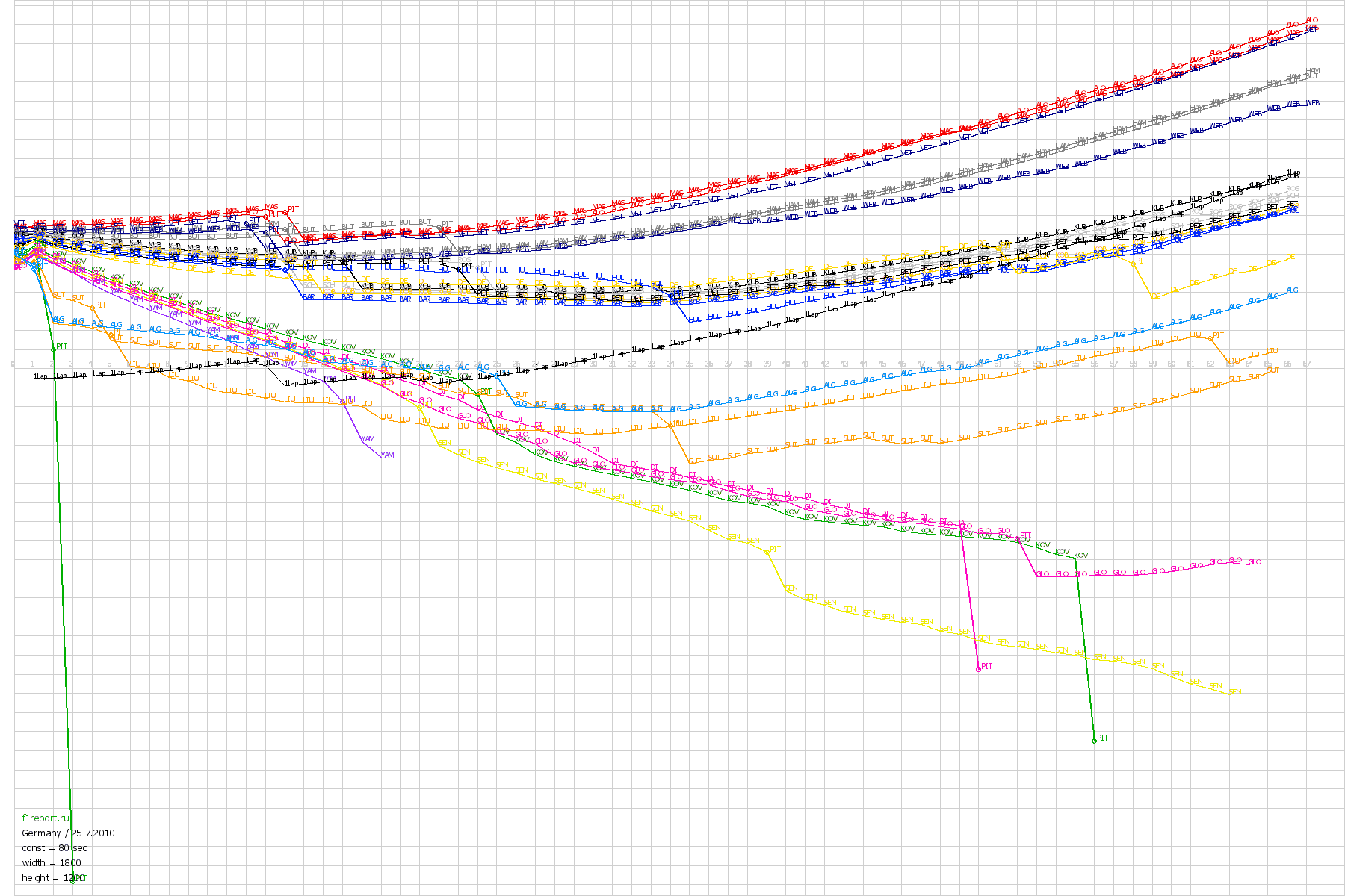 Покруговой график отрывов Гран-При Германии 2010