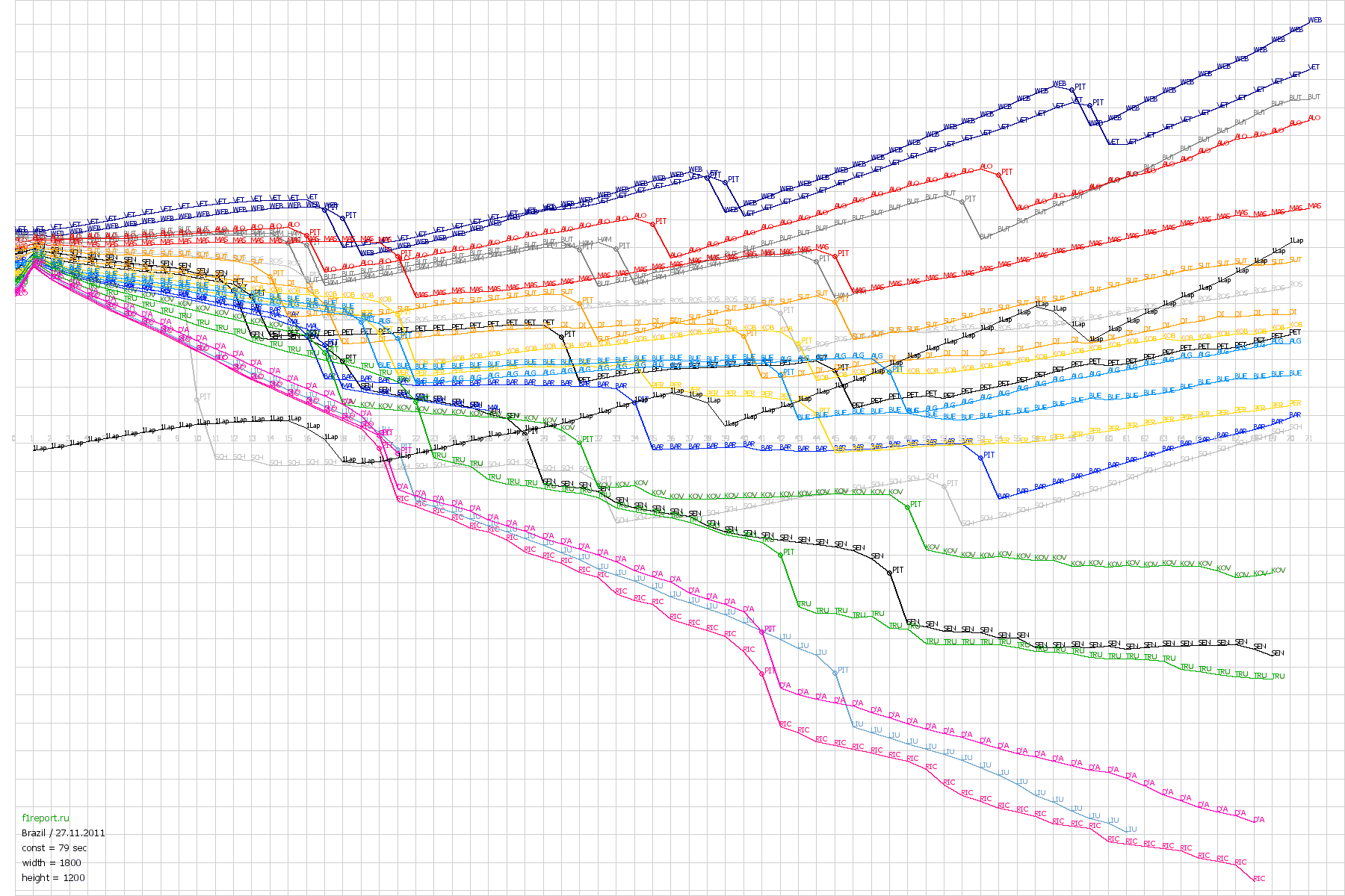 Покруговой график отрывов Гран-При Бразилии 2011