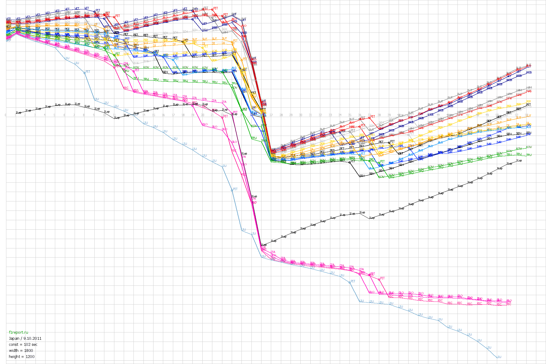 Покруговой график отрывов Гран-При Японии 2011