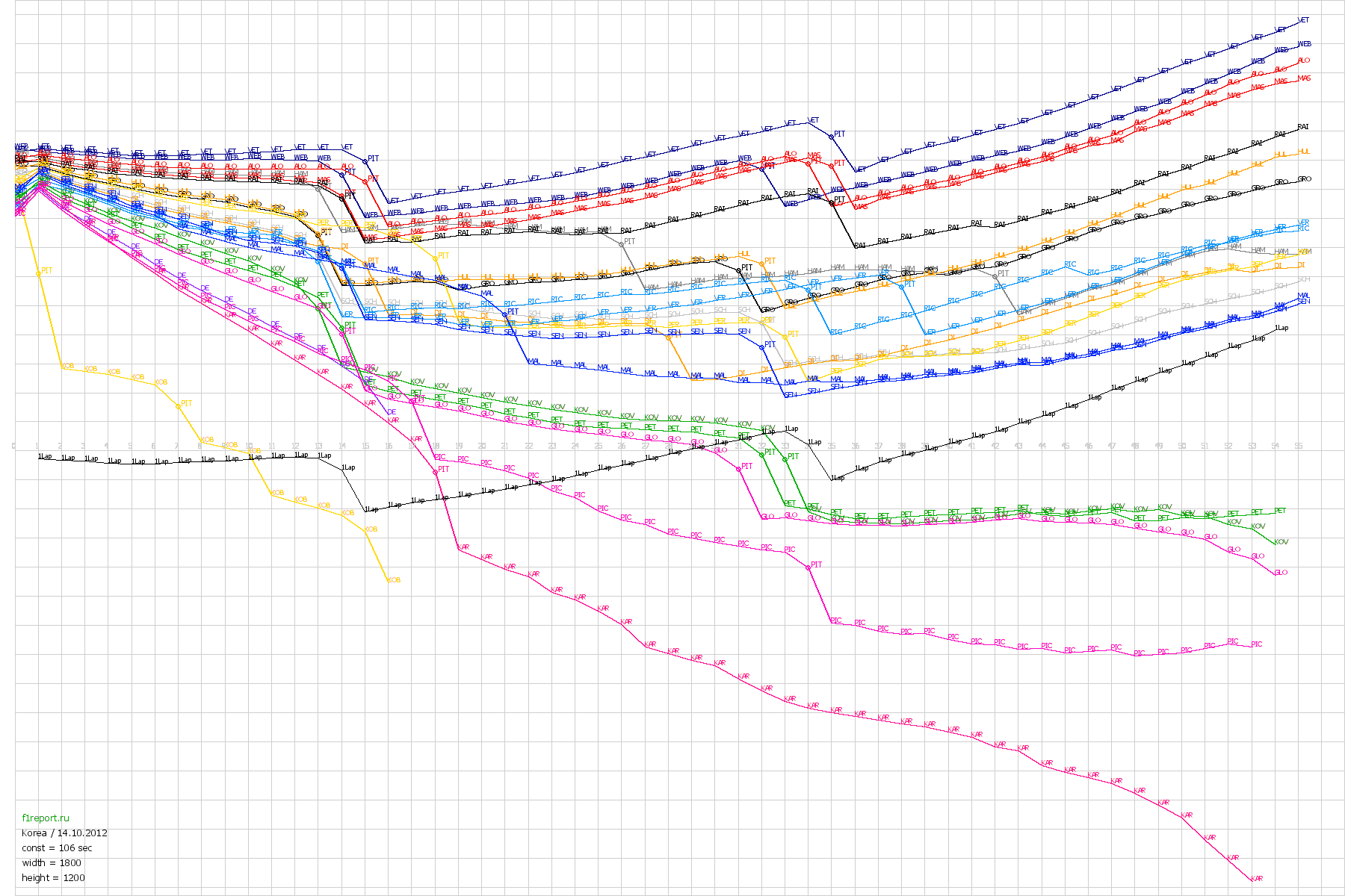 Покруговой график отрывов Гран-При Кореи 2012