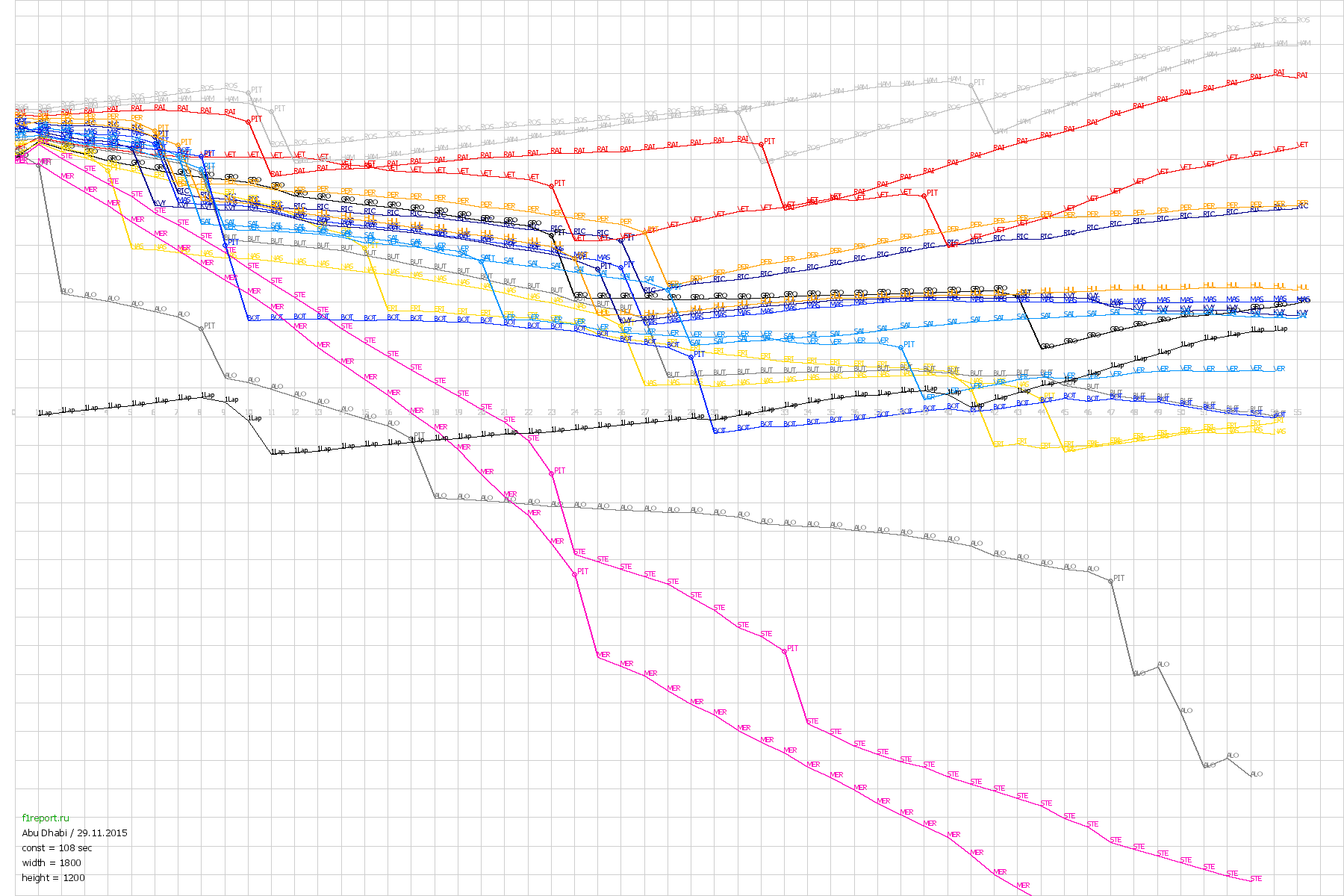 Покруговой график отрывов Гран-При Абу-Даби 2015