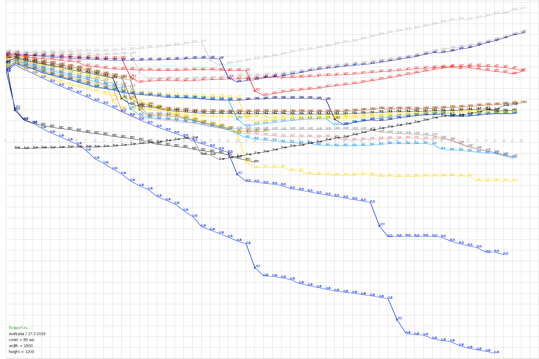 Покруговой график отрывов Гран-При Австралии 2019