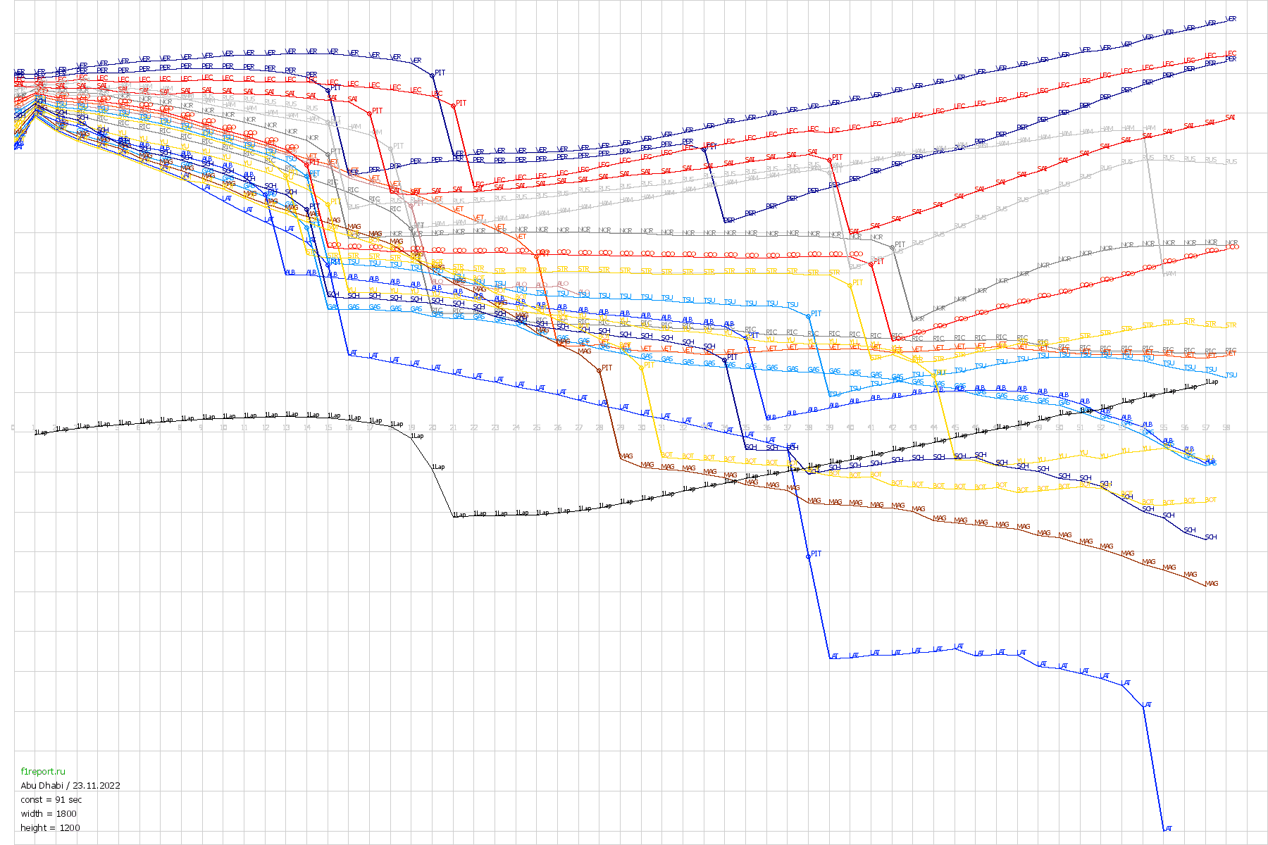 Покруговой график отрывов Гран-При Абу-Даби 2022