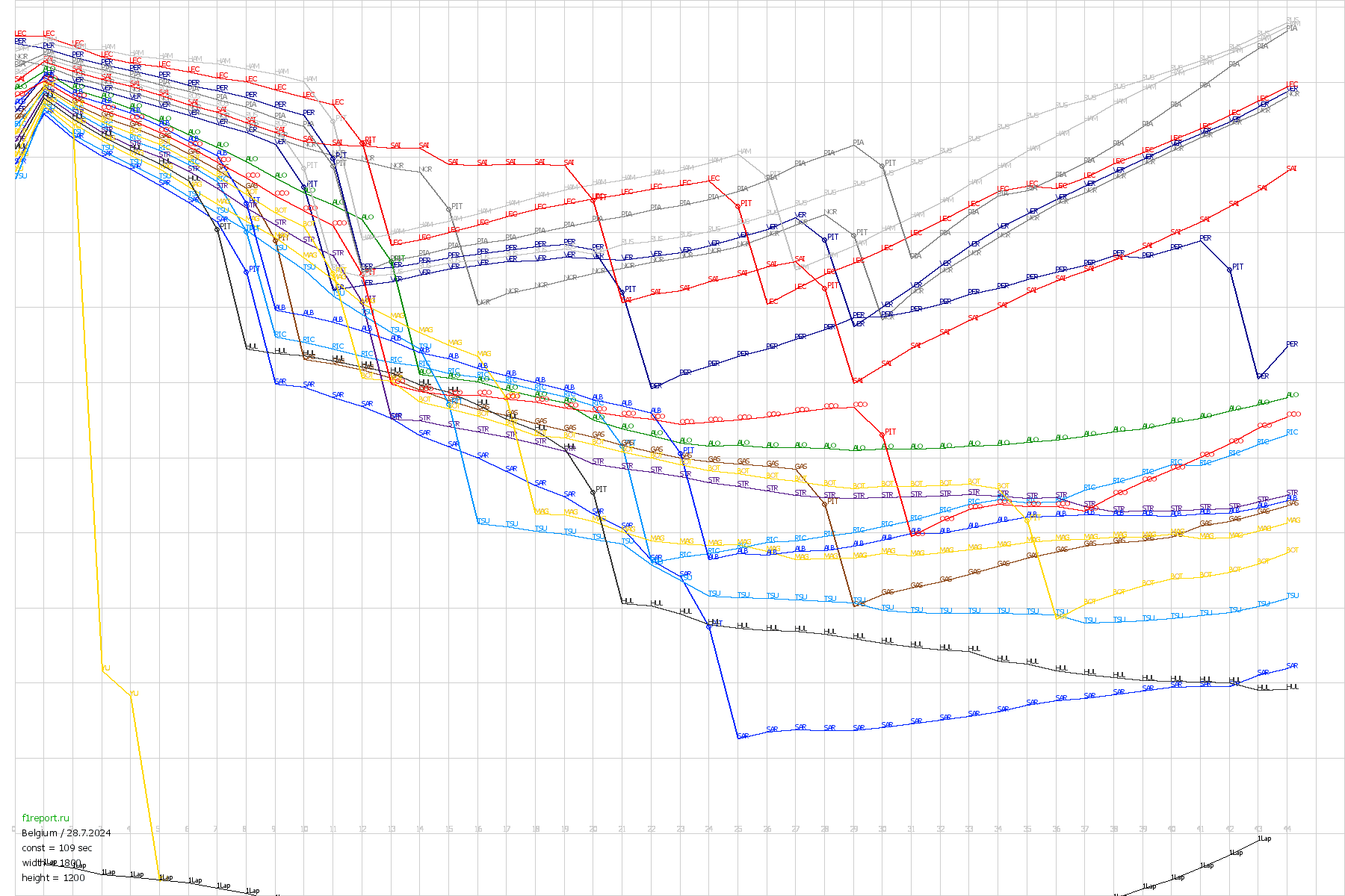 Покруговой график отрывов Гран-При Бельгии 2024