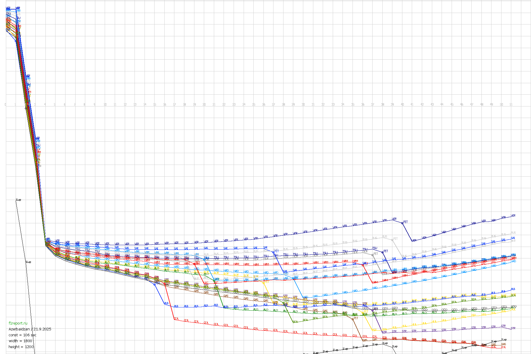 Покруговой график отрывов Гран-При Азербайджана 2025