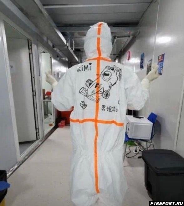 Пилот Alfa Romeo Кими Райкконен опубликовал на своей странице в социальной сети очень забавное фото. На снимке можно увидеть медсестру, которая работает в больнице в Шанхае. Медсестра одета в защитный костюм, который раскрашен в честь Кими. Можно увидеть, что на костюме написано "Кими" и нарисована машина Формулы 1.