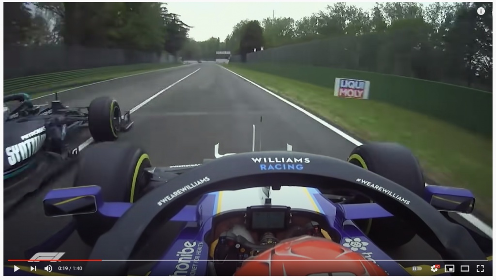 Во время гонки в Имоле Джордж Расселл (Williams) столкнулся с Валттери Боттасом (Mercedes). Пилоты боролись за девятое место. Расселл пытался опередить Боттаса, и при этом финн вытеснил британца на влажную часть трассы. В итоге Джордж потерял контроль над своей машиной и врезался в болид Mercedes. Представители пресс-службы Формулы 1 опубликовали запись этой аварии.