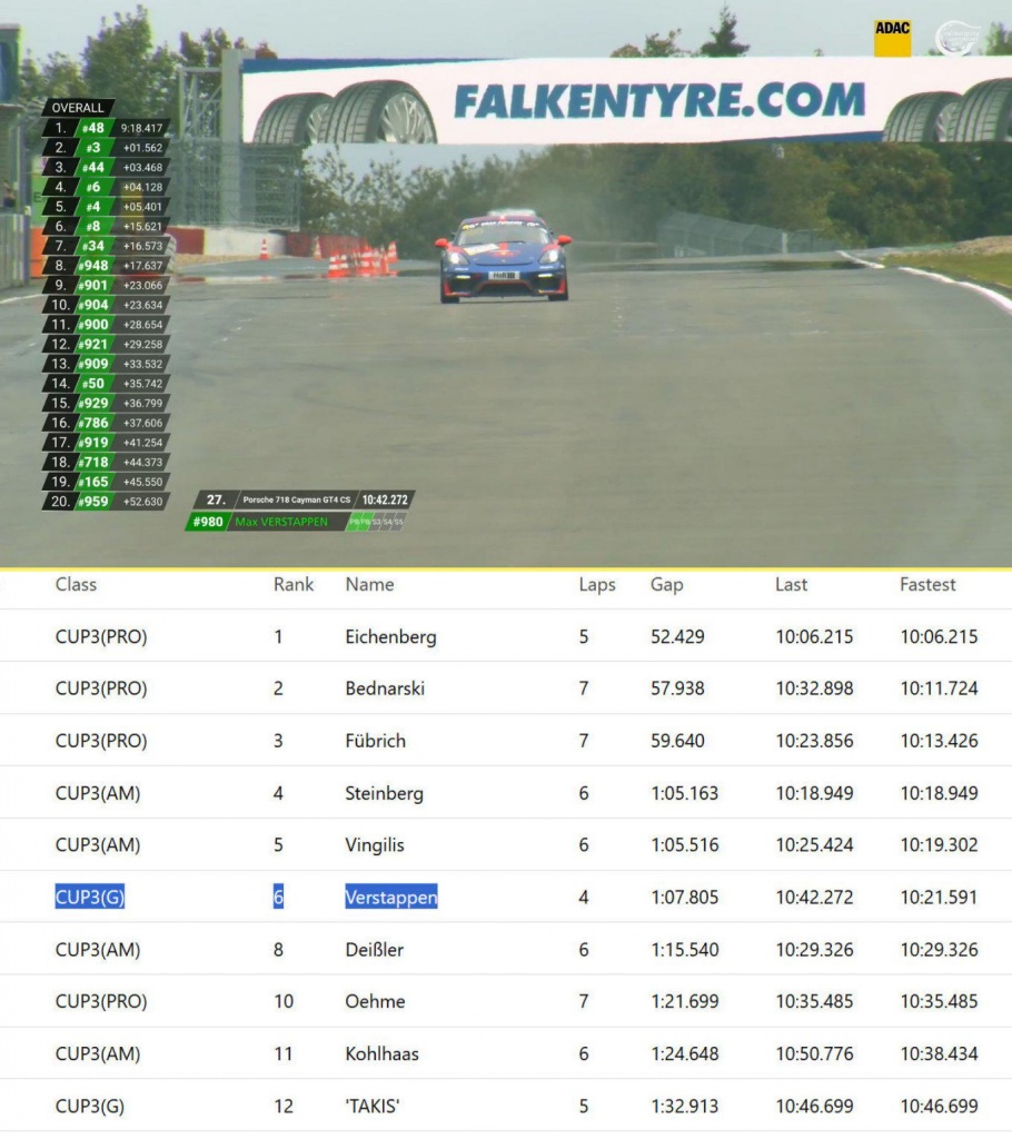 Ферстаппен провел квалификационные заезды за рулем Porsche 718 Cayman GT4 CS, выполнив необходимые требования немецкой автомобильной федерации (DMSB).