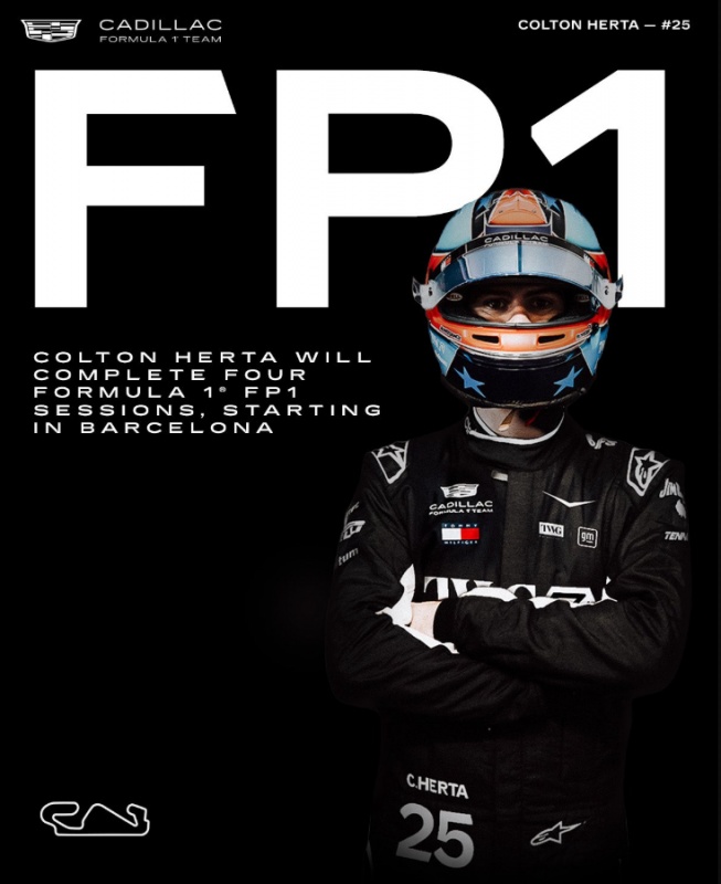 Американский тест-пилот Cadillac Колтон Херта примет участие в четырёх сессиях свободных практик (FP1) в сезоне 2026 года. Об этом официально объявила пресс-служба американской команды.