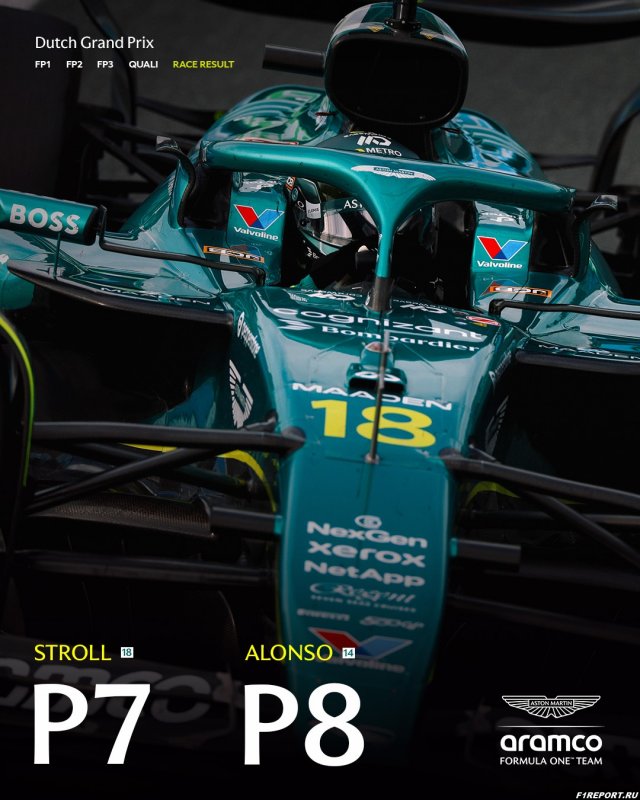 В Aston Martin довольны итогами гонкиОба пилота команды Aston Martin смогли заработать очки на Гран При Нидерландов. Фернандо Алонсо: "Сегодня было сложно, но мы смогли финишировать... | |