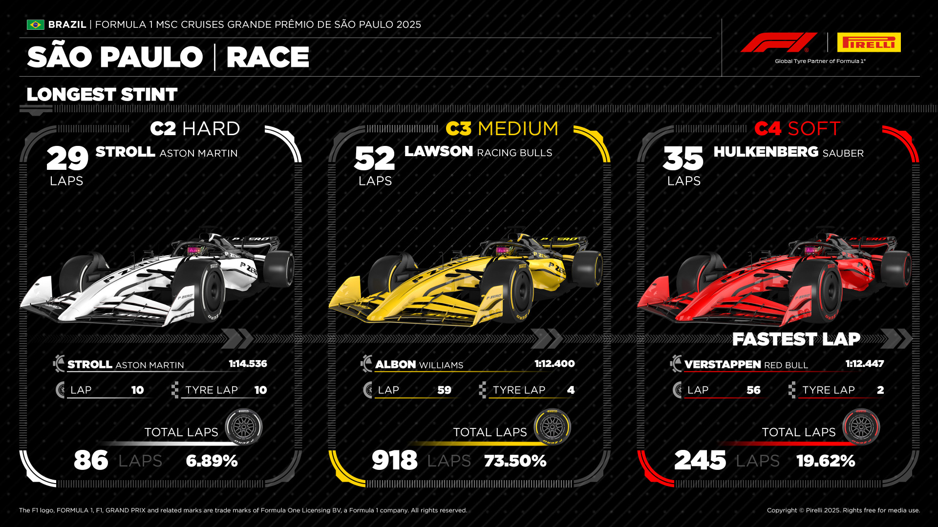 Гран При Бразилии: статистика по типам шинЛучшие времена и максимальное количество кругов на каждом из составов. | |