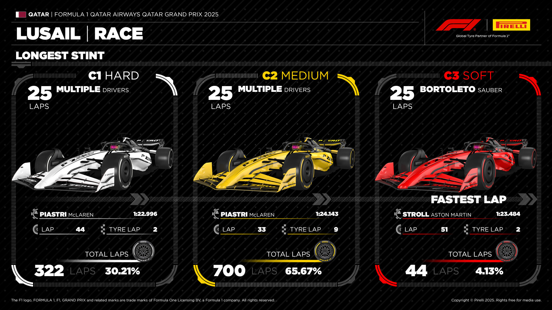 Гран При Катара: статистика по типам шинЛучшие времена и максимальное количество кругов на каждом из составов. | |