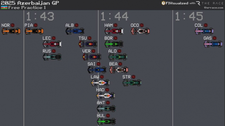 В первой сессии свободных заездов Гран При Азербайджана, лучшим стал пилот команды McLaren - Ландо Норрис, показав время 1:42.704.