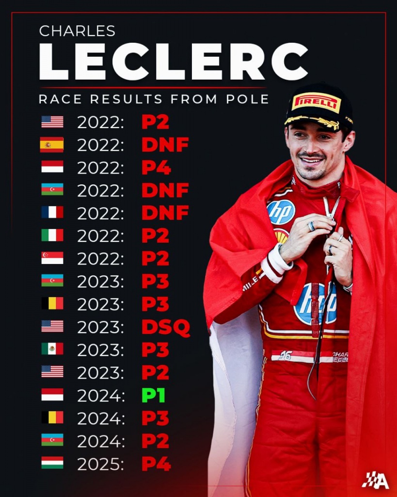 Шарль Леклер стартовал с поула и статистика играла против него, так как последние четыре гонки в Венгрии обладатель поула не выигрывал гонку. На старте Леклер и Пиастри сохранили позиции, а Норрис откатился на пятое место.