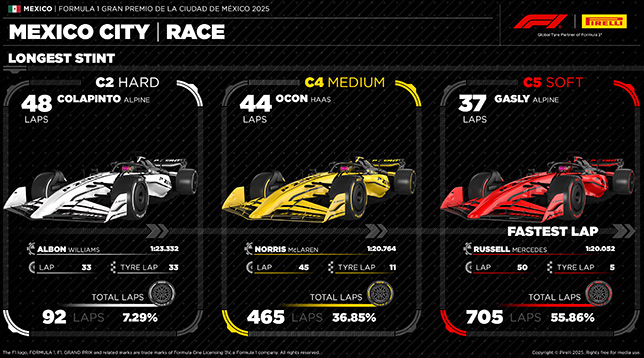 Гран При Мексики: статистика по типам шин Лучшие времена и максимальное количество кругов на каждом из составов.... 27 Окт 2025 |